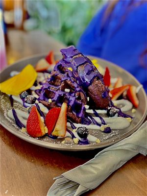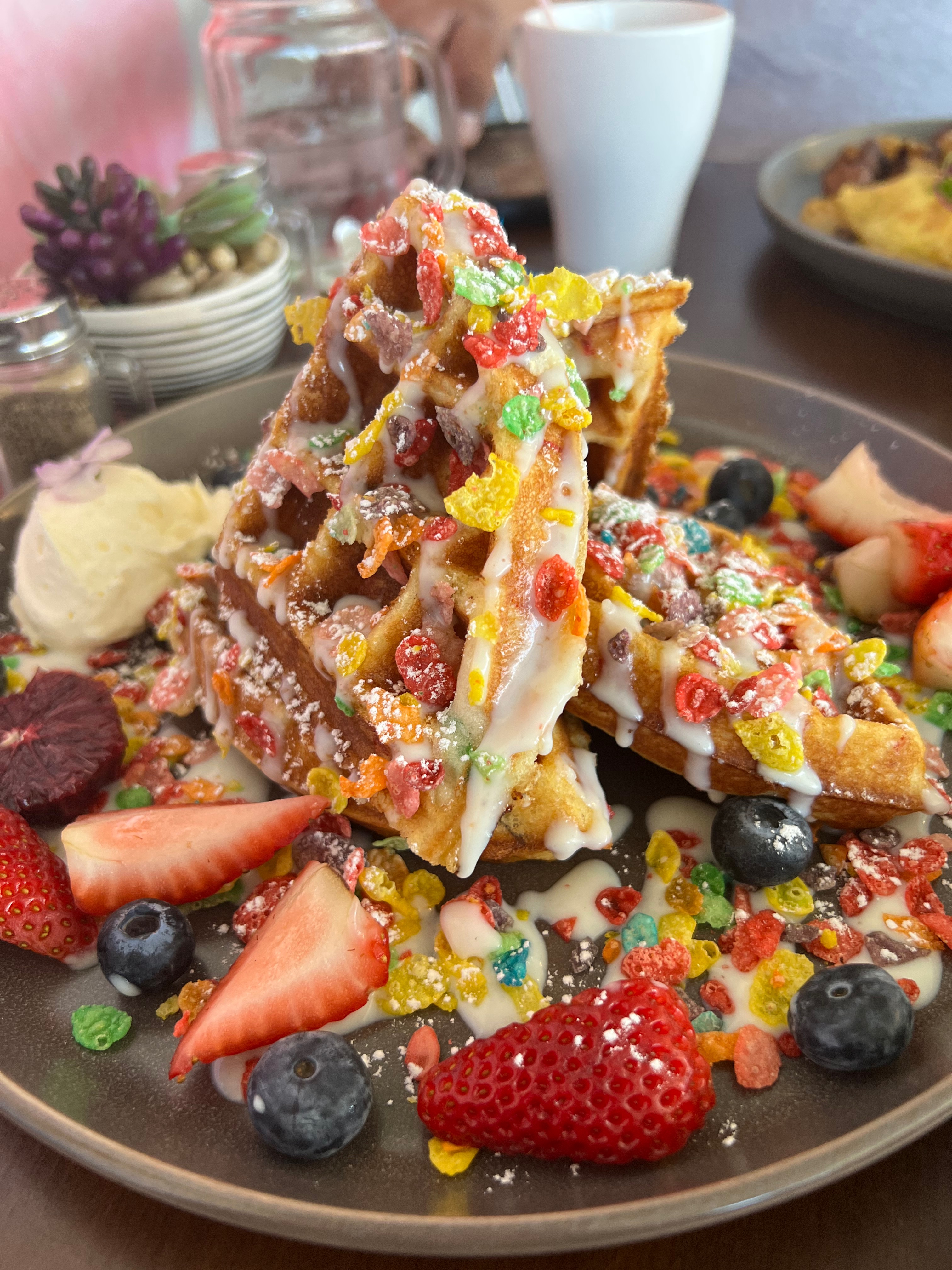 great food and atmosphere! I love getting the tiramisu waffle and a side of potatoes to balance sweet and savory .